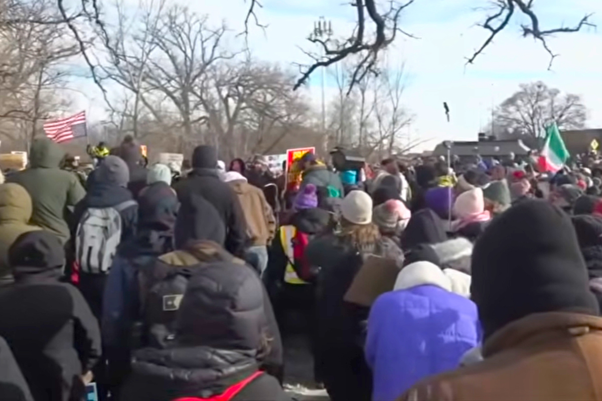Decenas de manifestantes se reunieron cerca del mediodía en la acera frente al Edificio Federal Bishop Henry Whipple, lanzando botellas y juguetes sexuales a una fila de policías que custodiaban la propiedad. El departamento de policía del condado de Hennepin informó que los arrestos comenzaron después de que la multitud empezara a lanzar trozos de hielo y dañara parte de la propiedad. Un policía recibió un golpe en la cabeza y el parabrisas de un vehículo de patrulla fue destrozado, informó el departamento en su página de Facebook.