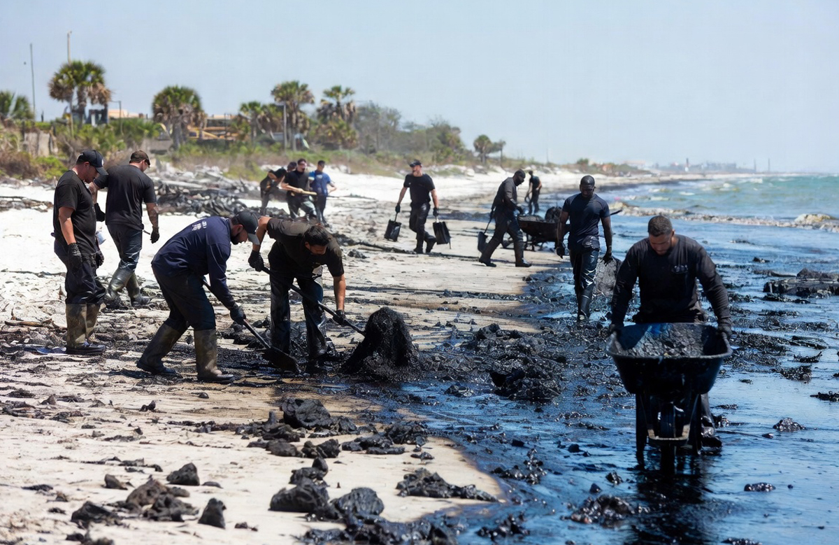 Como parte de estas acciones, se estableció la contratación eventual de pescadores y pobladores de los municipios de Agua Dulce, Coatzacoalcos, Pajapan, Mecayapan y Tatahuicapan, en Veracruz, así como de Paraíso y Cárdenas, en Tabasco, quienes participan en las labores de limpieza y recolección de hidrocarburo en playas.