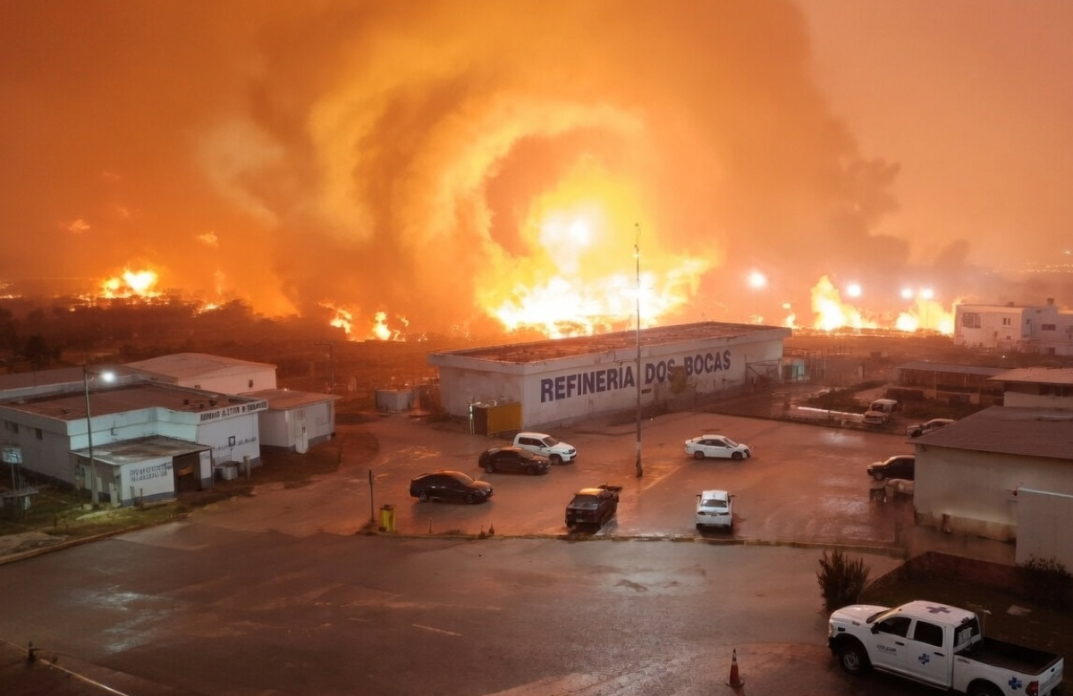 Dos Bocas, Tabasco.— Un total de cinco personas murieron como resultado de un incendio y explosión que se registró alrededor de la barda perimetral del predio 1 de almacenamiento de hidrocarburos de la refinería Olmeca.