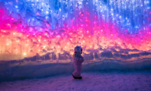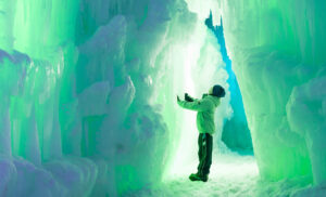 Explora cavernas de hielo y camina bajo arcos adornados con carámbanos colocados a mano que cuelgan en lo alto como un hermoso candelabro invernal.