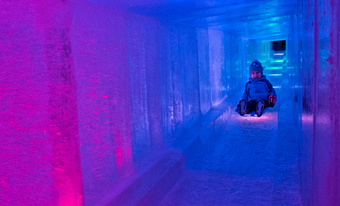 Chilla de alegría mientras te deslizas por uno de nuestros emocionantes toboganes de hielo diseñados para personas de todas las edades.