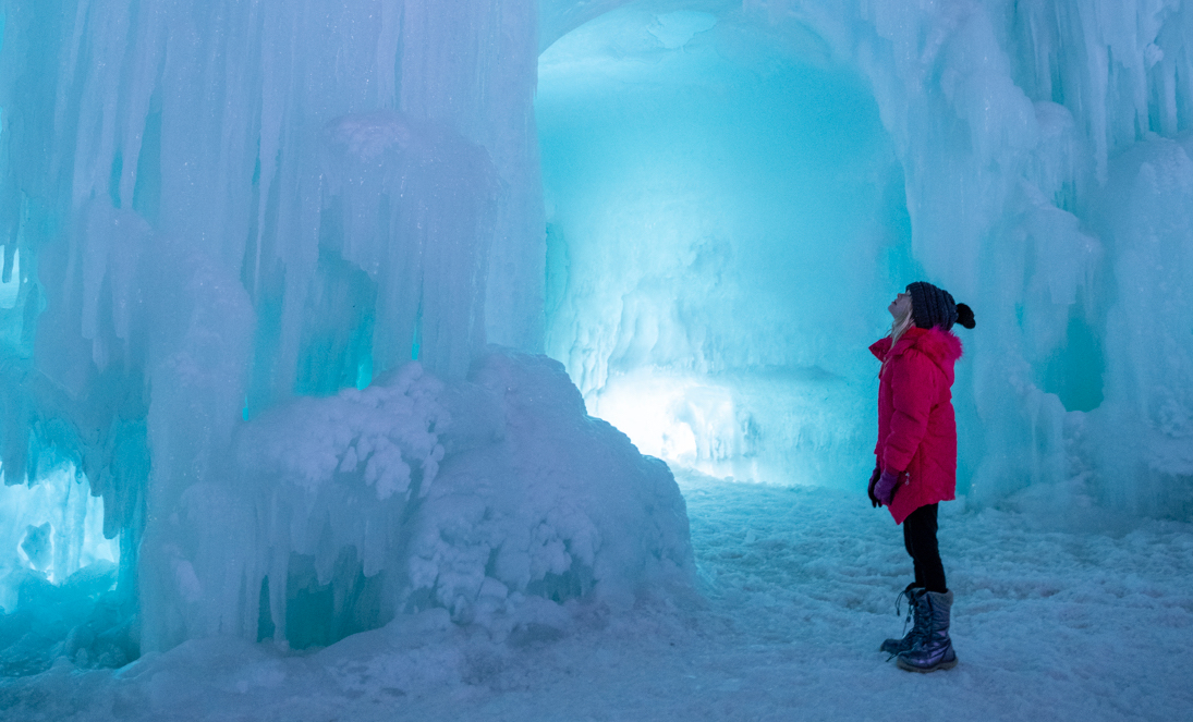 Explora cavernas de hielo y camina bajo arcos adornados con carámbanos colocados a mano que cuelgan en lo alto como un hermoso candelabro invernal.