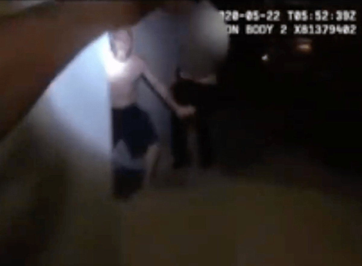 Un vecino del piso de arriba había llamado al 911 para reportar una “disputa doméstica” proveniente del apartamento de Whitaker. Poco después, el vecino volvió a llamar y los oficiales John Ferragamo y Jeff Cooke acudieron. Se acercaron al apartamento por un pasillo poco iluminado y llamaron a la puerta.