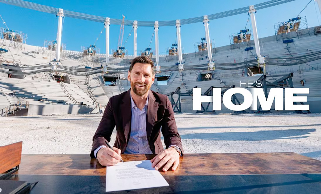 Un ‘He’s Home’ en la cuenta oficial de X acompañado por un video de 64 segundos en el que se ve a Messi, vestido con traje azul oscuro, firmar el nuevo vínculo en el centro del que será el Freedom Park, el nuevo estadio del club de Florida en la zona del aeropuerto de Miami.