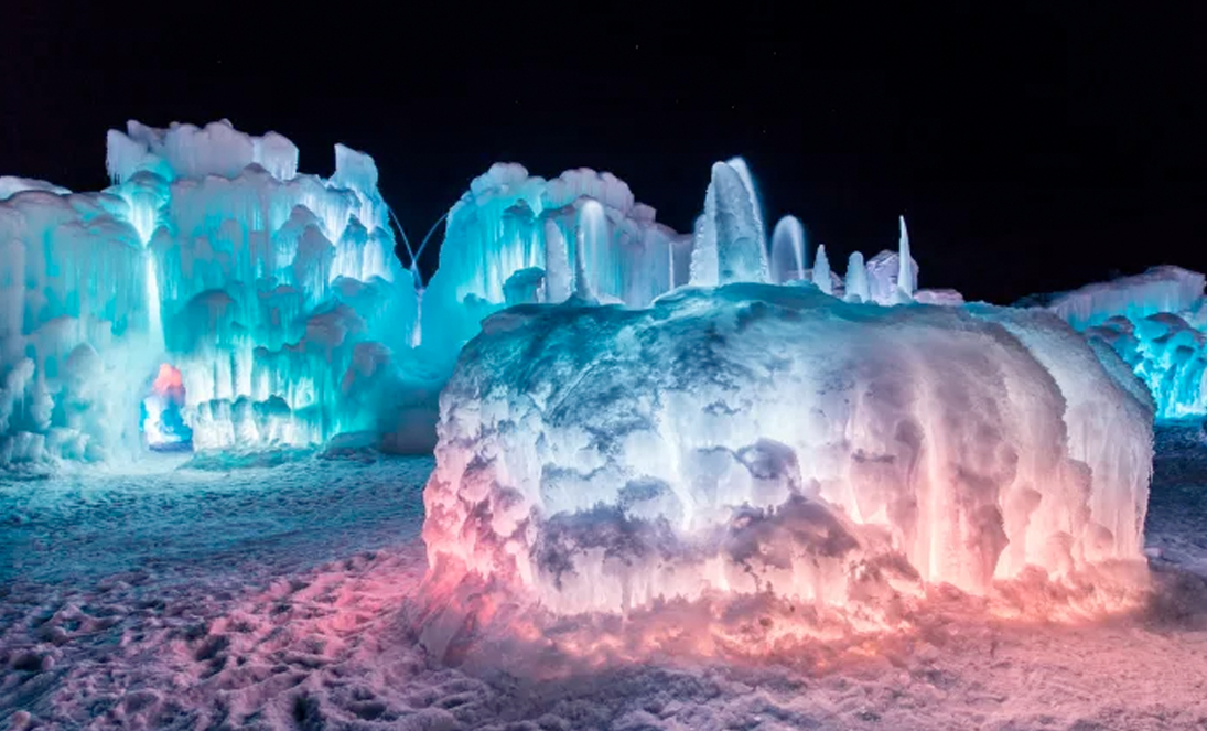 Para su segunda edición en Minnesota (la empresa con sede en Utah lleva 15 años construyendo atracciones invernales), creará nuevas estructuras llenas de cavernas, túneles helados y toboganes, todos iluminados con luces LED de colores.