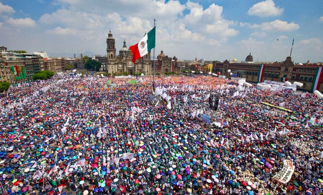 “Somos un país libre, independiente y soberano”, recalcó al alzar la voz. Unos cuantos apachurrados se movían entre los embudos de gente que de repente se aglomeraban en el Zócalo.