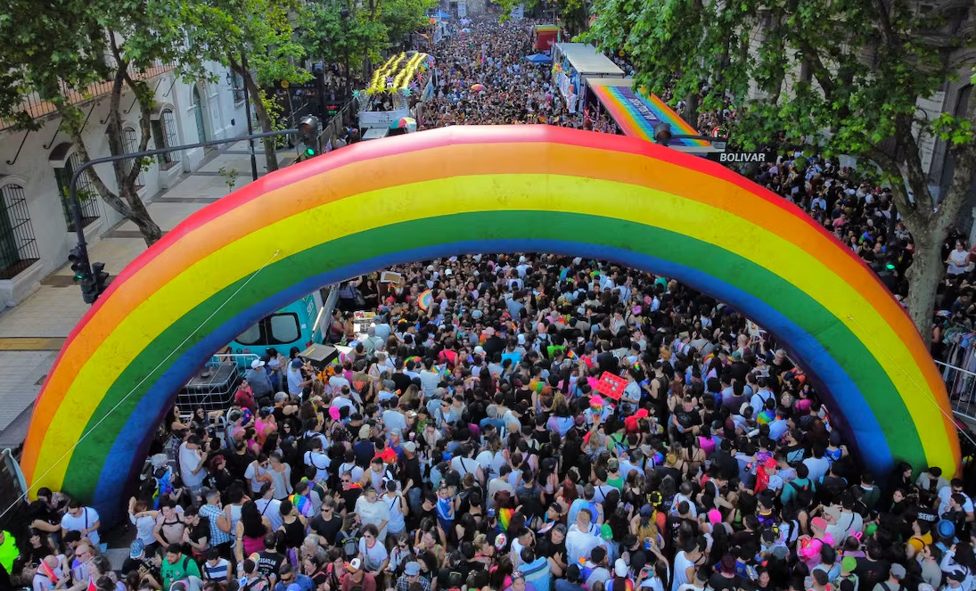 Buenos Aires, Argentina.- Decenas de miles de personas participaron el pasado sábado, 1 de noviembre, en Buenos Aires en la 34ª Marcha del Orgullo LGBTQ argentina, que recorrió el centro de la ciudad con consignas en defensa de los derechos de la diversidad sexual y críticas al gobierno de Javier Milei.