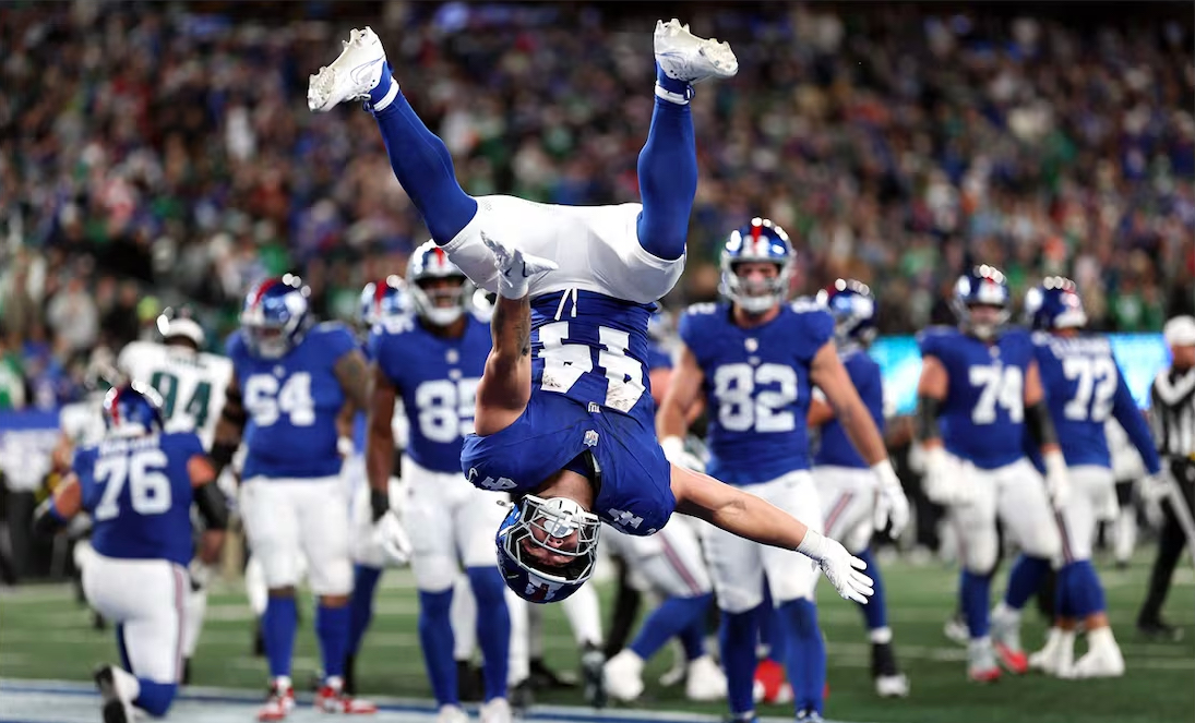 Cam Skattebo corrió para tres touchdowns brilló en horario estelar junto con el también novato Jaxson Dart y contribuyó el jueves al triunfo sorpresivo de los Giants de Nueva York, por 34-17 sobre los Eagles de Filadelfia.