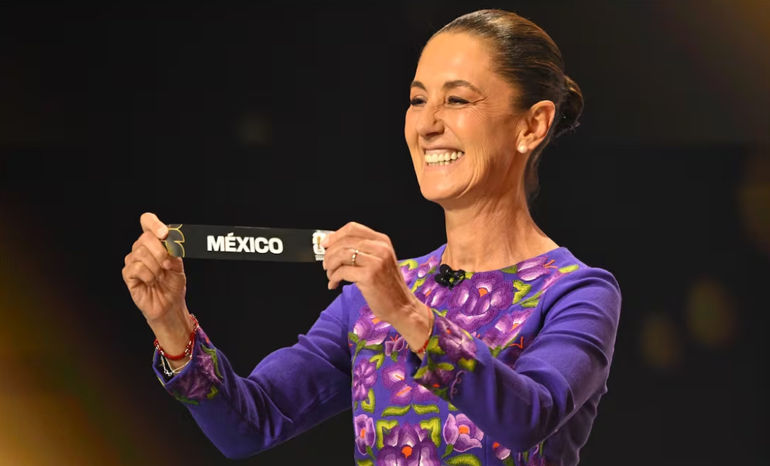 Cuando reveló el nombre de México para colocarlo en el Grupo A del Sorteo, Claudia Sheinbaum gritó “Viva México” y agitó el papel con sus dos manos.