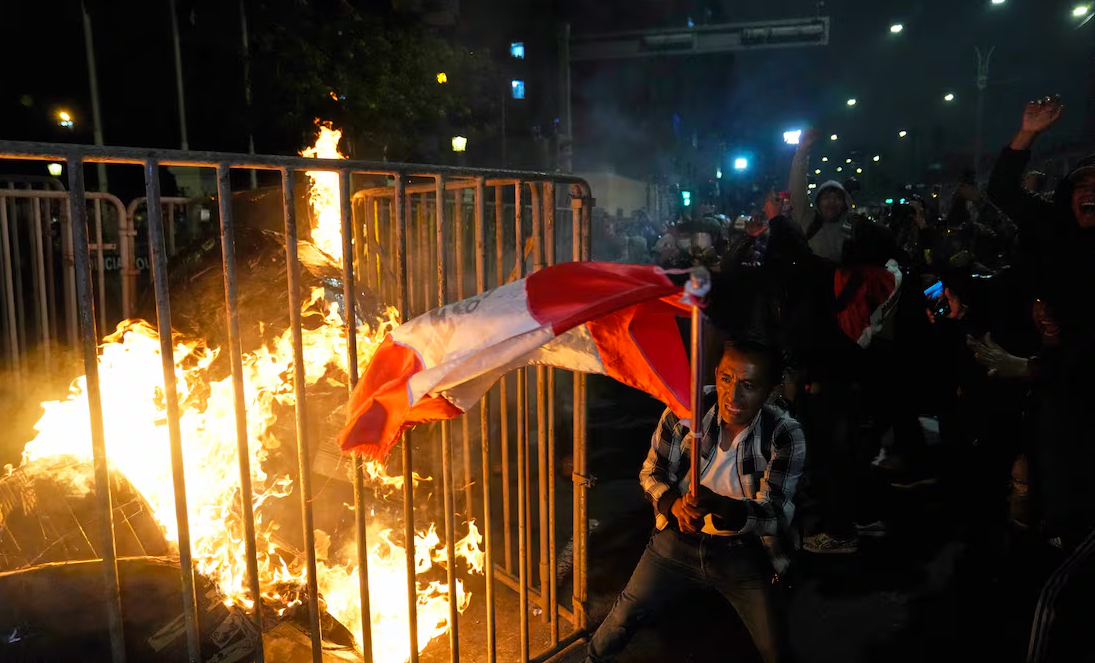 Lima, Perú.- La Policía Nacional del Perú dispersó este miércoles a los manifestantes que llegaron a los exteriores del Congreso en una marcha de protesta en Lima, que se repitió en otras ciudades del país contra el gobierno y el Parlamento, después de que intentaron tumbar las rejas de seguridad y encendieron fuego cerca a los agentes policiales.