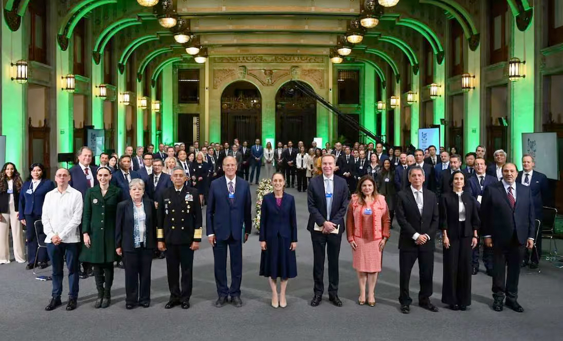 En un comunicado de prensa, Presidencia de la República detalló que la mandataria federal compartió ante empresarios de 17 países el Plan México, el cual engloba acciones como: fortalecer la conectividad del país con mayor infraestructura ferroviaria, carretera, aeroportuaria y portuaria; generar a través de la Comisión Federal de Electricidad (CFE) 26 mil megawatts y un complemento de inversión privada para energía, así como 158 proyectos para transmisión; establecer un marco de producción para Petróleos Mexicanos (Pemex) de 1.8 millones de barriles de hidrocarburos al día y desarrollar más gas natural; invertir en proyectos de agua como la tecnificación del riego agrícola; la construcción de 1.7 millones de viviendas en los siguientes seis años; la creación de 200 mil nuevos lugares en Educación Media Superior y 330 mil para Educación Superior; así como la reducción de al menos el 50 por ciento de los trámites a través de la simplificación y digitalización.