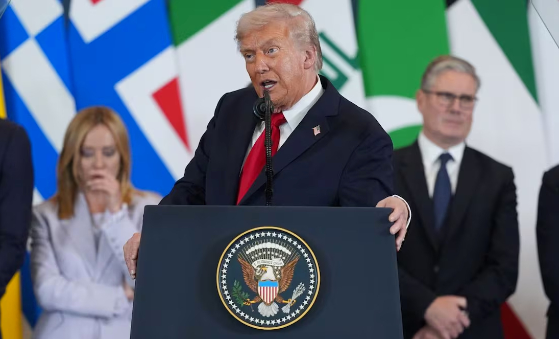 Trump dudó y luego dijo: “Me arriesgo”, buscando la mirada de Meloni.