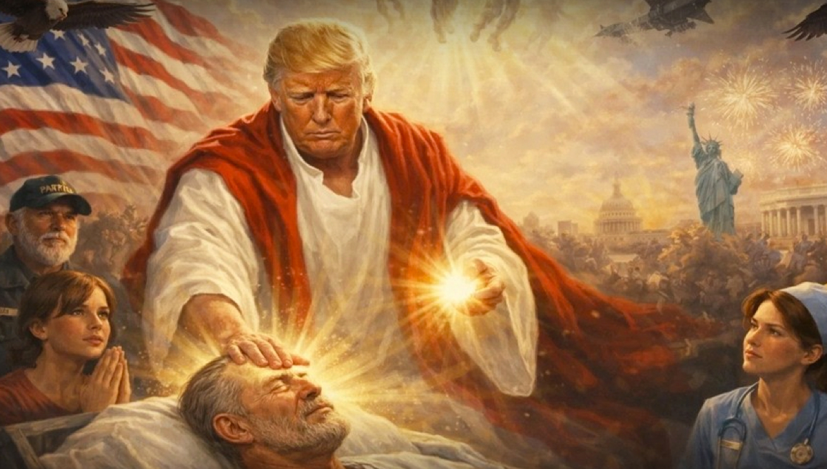 El mandatario estadounidense subió además una ilustración polémica donde se muestra como si fuera Jesús, con una túnica blanca, con la mano sobre la cabeza de un enfermo.